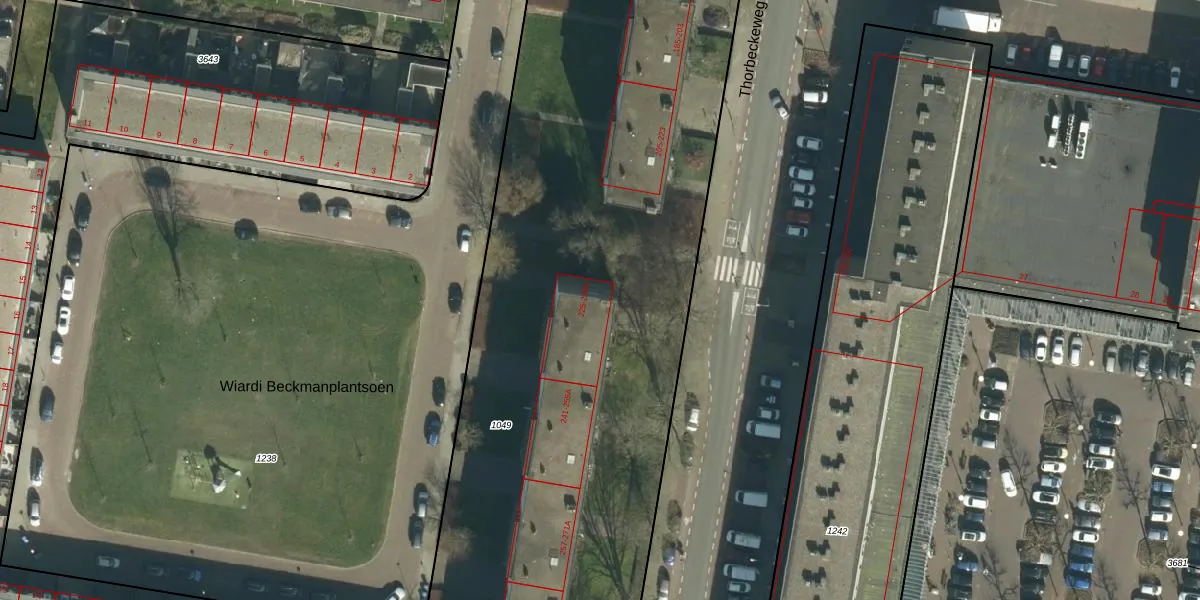 Het perceel waarop Thorbeckeweg 239 staat heeft een oppervlakte van 5896 m². Dit is een zeer groot perceel. De perceeloppervlakte wordt geregistreerd door het Kadaster. Gedetailleerde informatie over de maten van dit perceel kunt u vinden in het rapport Kadastrale kaart met maatvoering van Thorbeckeweg 239.
