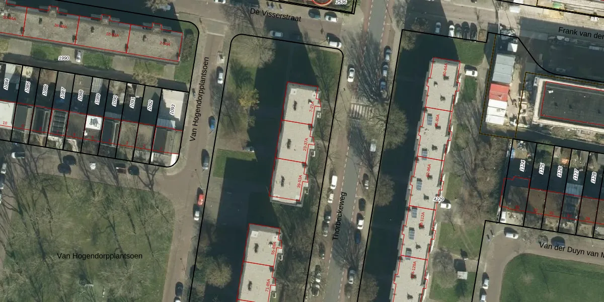 Het perceel waarop Thorbeckeweg 33 staat heeft een oppervlakte van 6240 m². Dit is een zeer groot perceel. De perceeloppervlakte wordt geregistreerd door het Kadaster. Gedetailleerde informatie over de maten van dit perceel kunt u vinden in het rapport Kadastrale kaart met maatvoering van Thorbeckeweg 33.