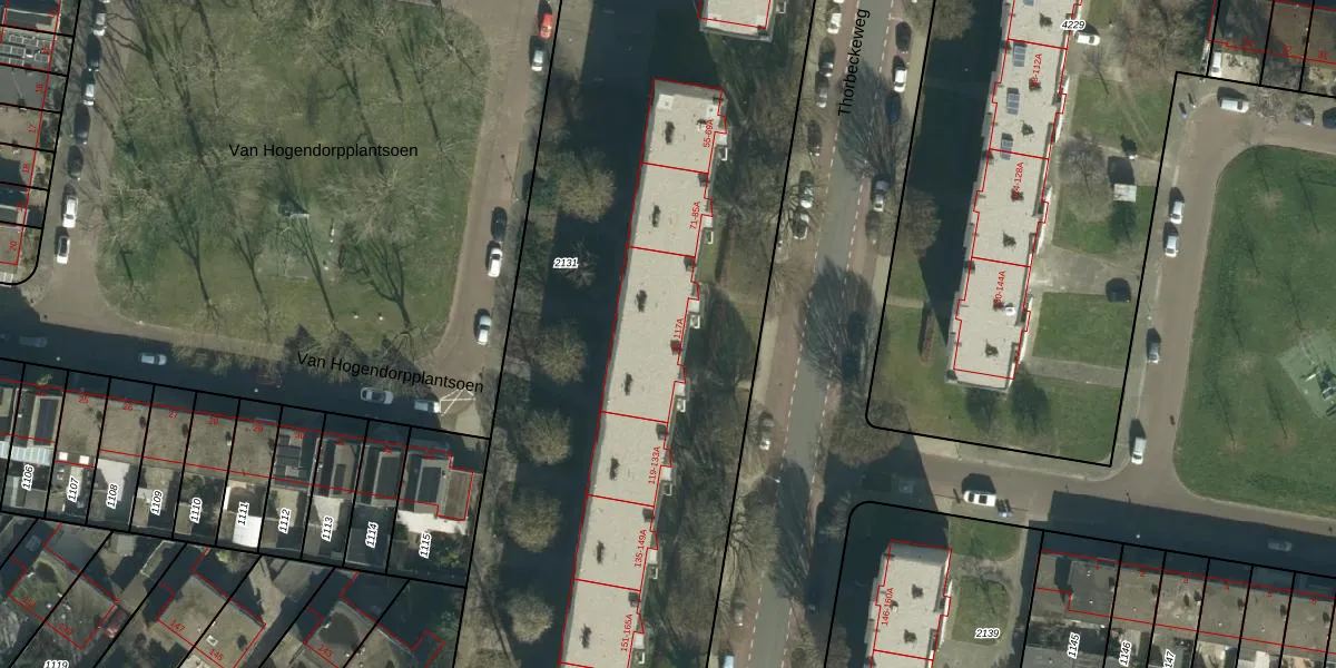 Het perceel waarop Thorbeckeweg 95 staat heeft een oppervlakte van 6240 m². Dit is een zeer groot perceel. De perceeloppervlakte wordt geregistreerd door het Kadaster. Gedetailleerde informatie over de maten van dit perceel kunt u vinden in het rapport Kadastrale kaart met maatvoering van Thorbeckeweg 95.