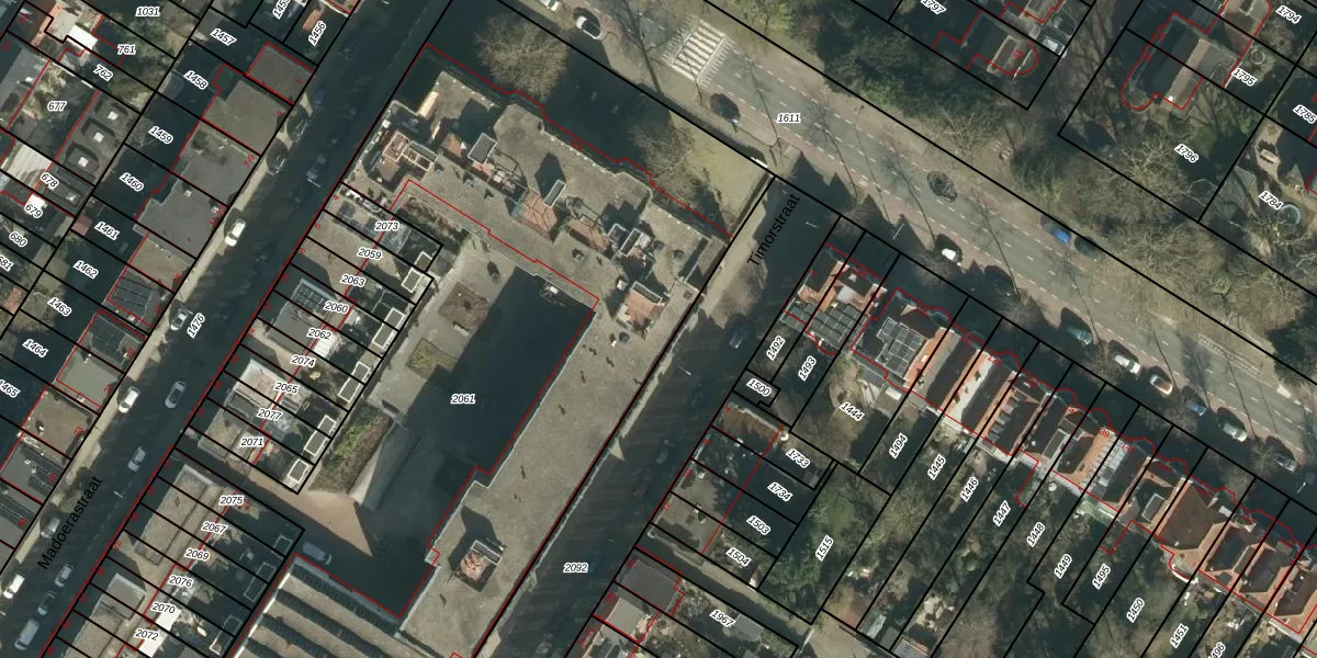 Het perceel waarop Timorstraat 1 staat heeft een oppervlakte van 5036 m². Dit is een zeer groot perceel. De perceeloppervlakte wordt geregistreerd door het Kadaster. Gedetailleerde informatie over de maten van dit perceel kunt u vinden in het rapport Kadastrale kaart met maatvoering van Timorstraat 1.