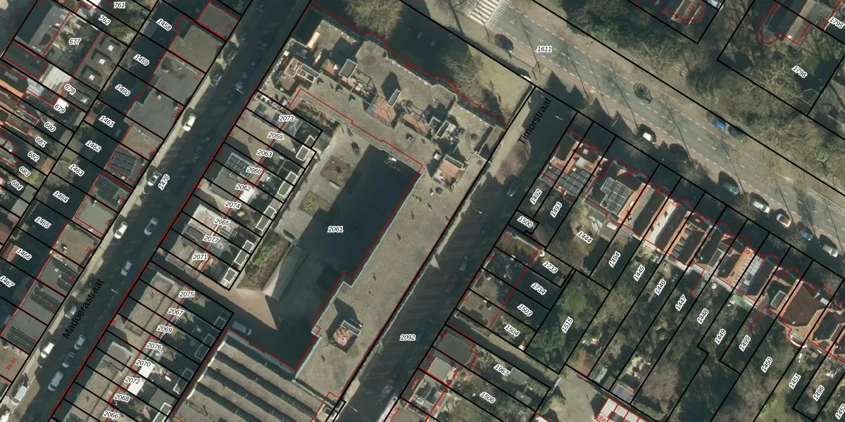 Het perceel waarop Timorstraat 1-B staat heeft een oppervlakte van 5036 m². Dit is een zeer groot perceel. De perceeloppervlakte wordt geregistreerd door het Kadaster. Gedetailleerde informatie over de maten van dit perceel kunt u vinden in het rapport Kadastrale kaart met maatvoering van Timorstraat 1-B.