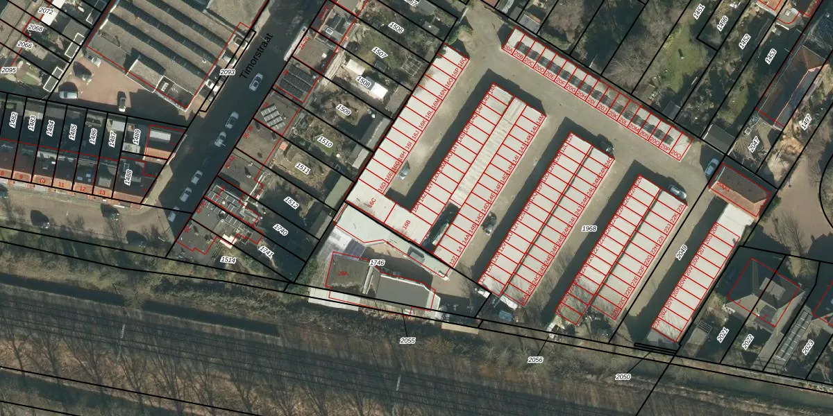 Het perceel waarop Timorstraat 16-A staat heeft een oppervlakte van 4332 m². Dit is een zeer groot perceel. De perceeloppervlakte wordt geregistreerd door het Kadaster. Gedetailleerde informatie over de maten van dit perceel kunt u vinden in het rapport Kadastrale kaart met maatvoering van Timorstraat 16-A.