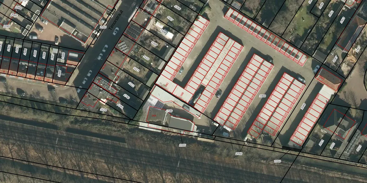 Het perceel waarop Timorstraat 16-B staat heeft een oppervlakte van 4332 m². Dit is een zeer groot perceel. De perceeloppervlakte wordt geregistreerd door het Kadaster. Gedetailleerde informatie over de maten van dit perceel kunt u vinden in het rapport Kadastrale kaart met maatvoering van Timorstraat 16-B.