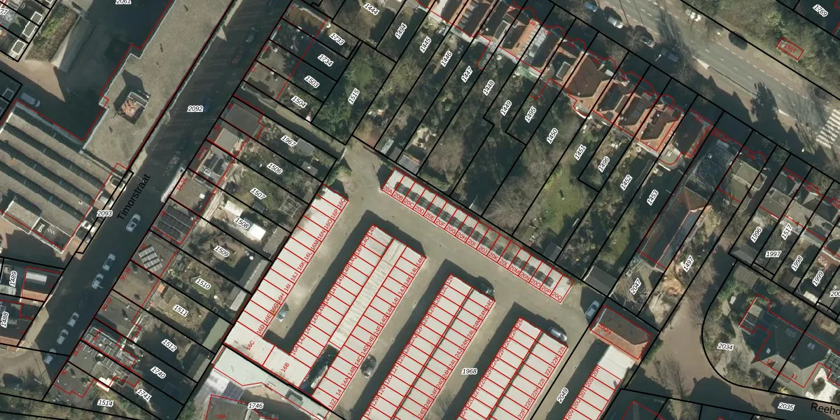 Het perceel waarop Timorstraat 20-D staat heeft een oppervlakte van 4332 m². Dit is een zeer groot perceel. De perceeloppervlakte wordt geregistreerd door het Kadaster. Gedetailleerde informatie over de maten van dit perceel kunt u vinden in het rapport Kadastrale kaart met maatvoering van Timorstraat 20-D.