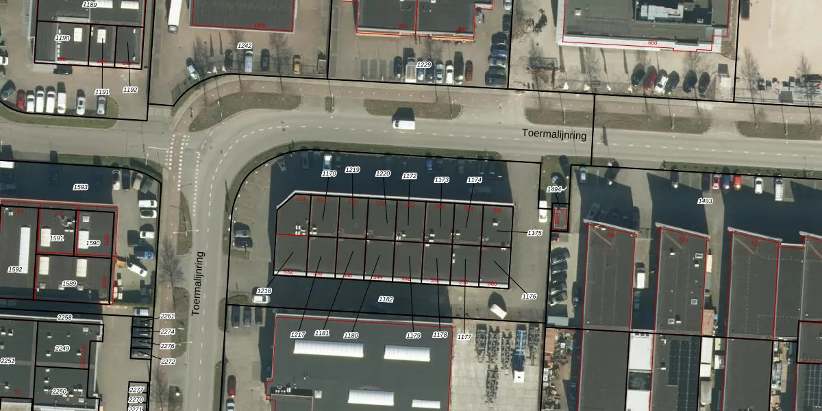 Het perceel waarop Toermalijnring 512 staat heeft een oppervlakte van 70 m². Dit is een klein perceel. De perceeloppervlakte wordt geregistreerd door het Kadaster. Gedetailleerde informatie over de maten van dit perceel kunt u vinden in het rapport Kadastrale kaart met maatvoering van Toermalijnring 512.