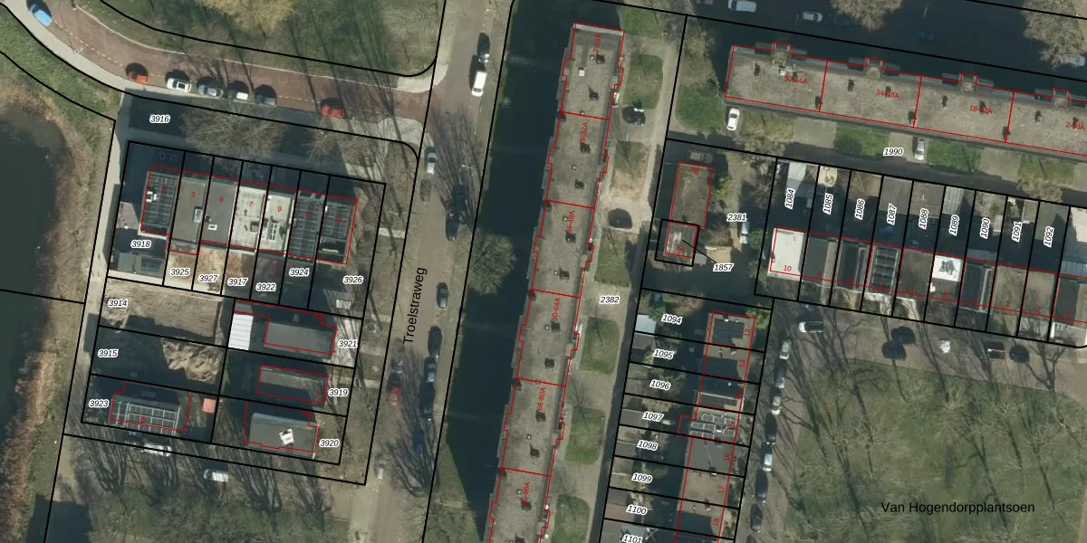 Het perceel waarop Troelstraweg 36 staat heeft een oppervlakte van 3485 m². Dit is een zeer groot perceel. De perceeloppervlakte wordt geregistreerd door het Kadaster. Gedetailleerde informatie over de maten van dit perceel kunt u vinden in het rapport Kadastrale kaart met maatvoering van Troelstraweg 36.