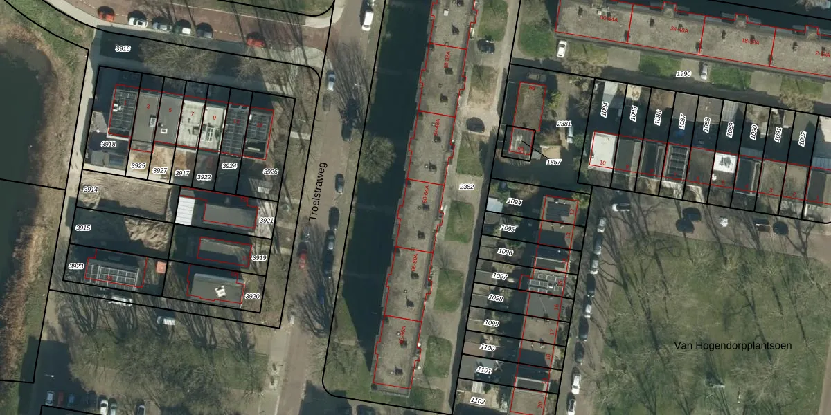Het perceel waarop Troelstraweg 64 staat heeft een oppervlakte van 3485 m². Dit is een zeer groot perceel. De perceeloppervlakte wordt geregistreerd door het Kadaster. Gedetailleerde informatie over de maten van dit perceel kunt u vinden in het rapport Kadastrale kaart met maatvoering van Troelstraweg 64.