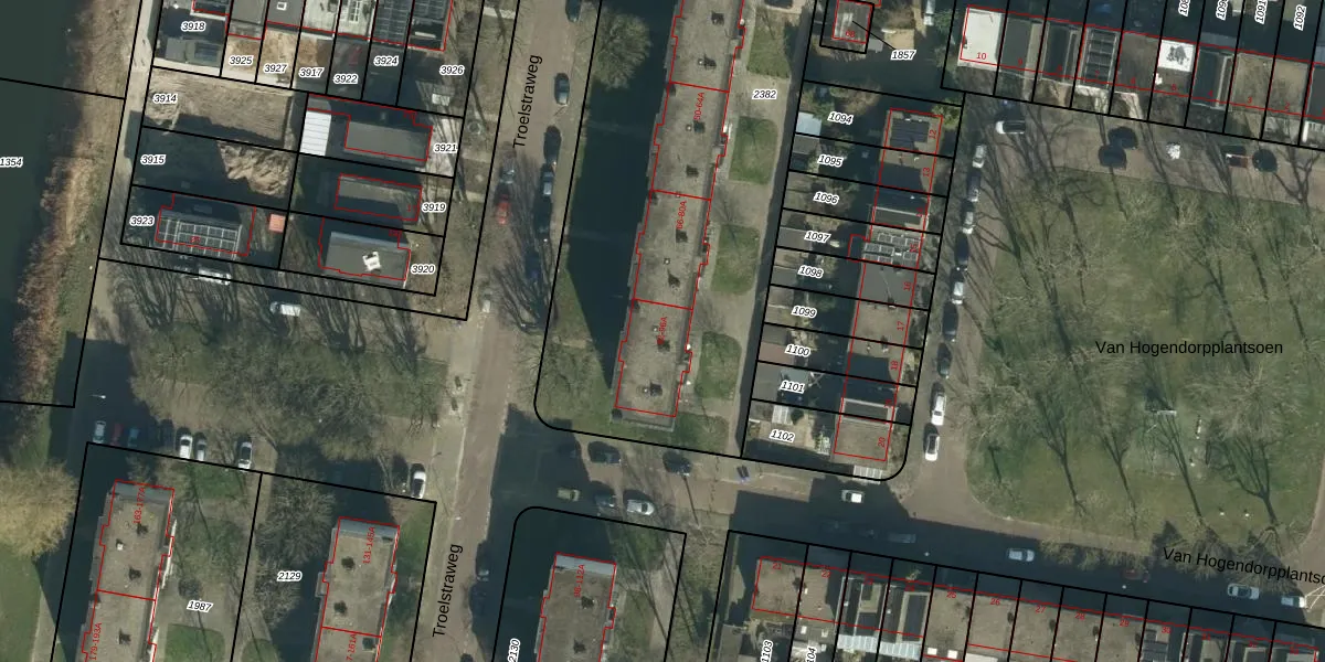 Het perceel waarop Troelstraweg 82-A staat heeft een oppervlakte van 3485 m². Dit is een zeer groot perceel. De perceeloppervlakte wordt geregistreerd door het Kadaster. Gedetailleerde informatie over de maten van dit perceel kunt u vinden in het rapport Kadastrale kaart met maatvoering van Troelstraweg 82-A.