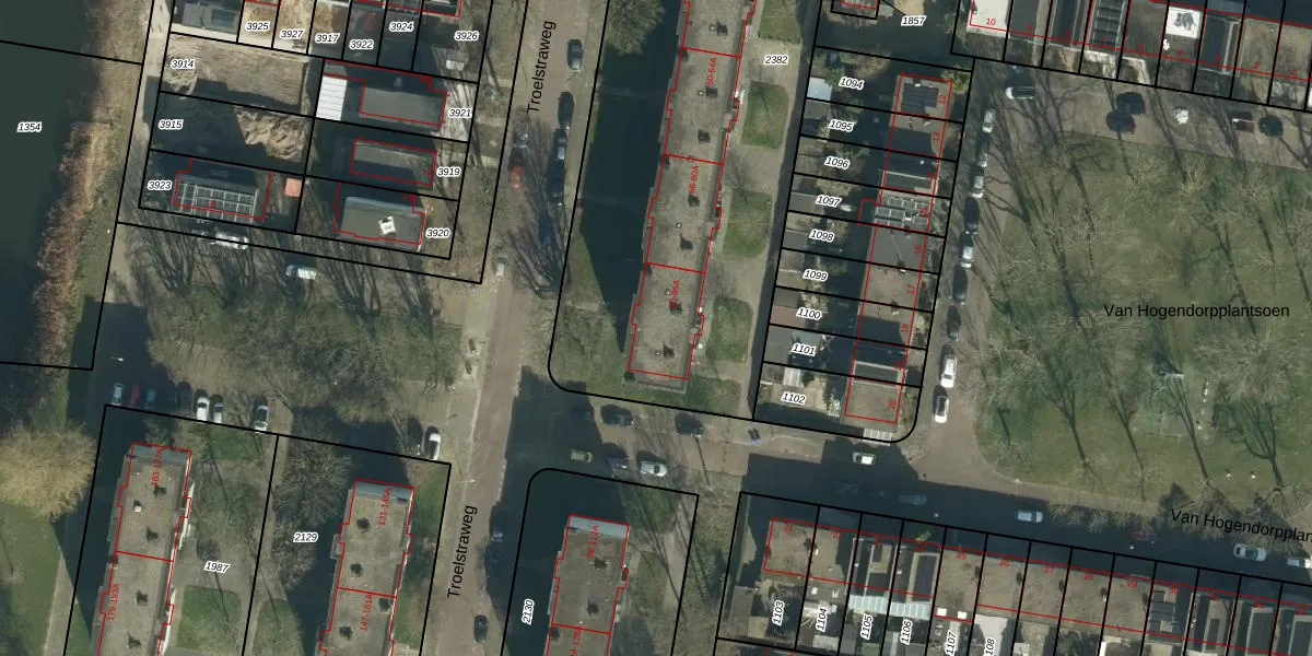 Het perceel waarop Troelstraweg 94 staat heeft een oppervlakte van 3485 m². Dit is een zeer groot perceel. De perceeloppervlakte wordt geregistreerd door het Kadaster. Gedetailleerde informatie over de maten van dit perceel kunt u vinden in het rapport Kadastrale kaart met maatvoering van Troelstraweg 94.