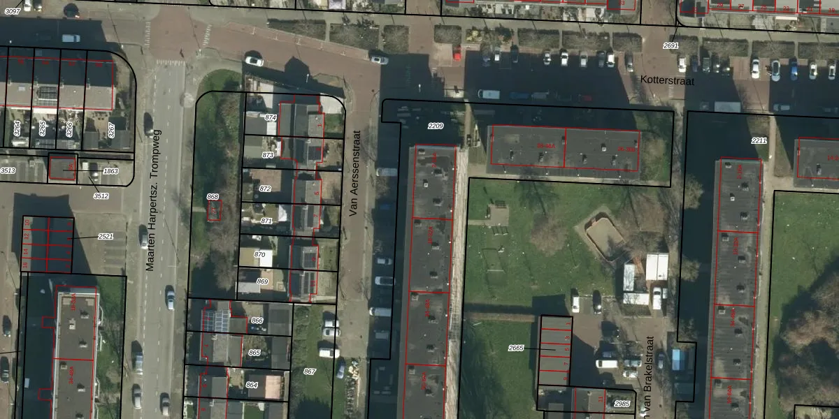 Het perceel waarop Van Aerssenstraat 4 staat heeft een oppervlakte van 2755 m². Dit is een zeer groot perceel. De perceeloppervlakte wordt geregistreerd door het Kadaster. Gedetailleerde informatie over de maten van dit perceel kunt u vinden in het rapport Kadastrale kaart met maatvoering van Van Aerssenstraat 4.