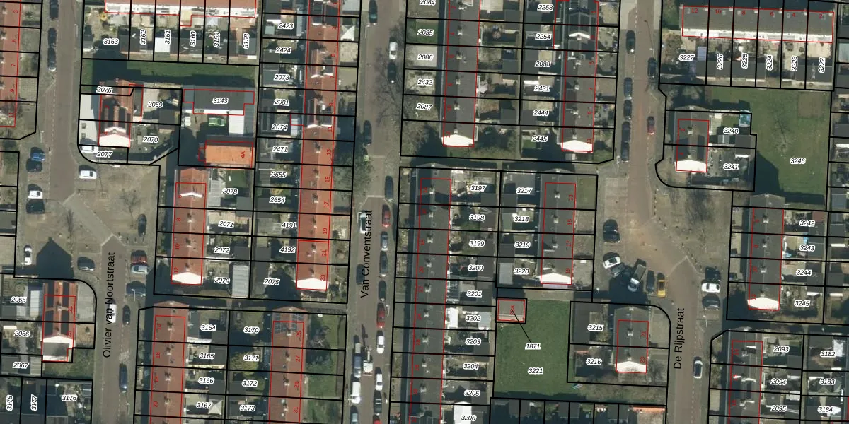 Het perceel waarop Van Conventstraat 16 staat heeft een oppervlakte van 140 m². Dit is een middelgroot perceel. De perceeloppervlakte wordt geregistreerd door het Kadaster. Gedetailleerde informatie over de maten van dit perceel kunt u vinden in het rapport Kadastrale kaart met maatvoering van Van Conventstraat 16.