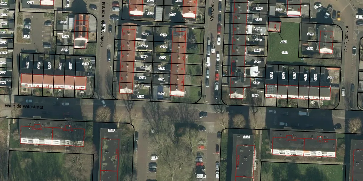 Het perceel waarop Van Conventstraat 35 staat heeft een oppervlakte van 263 m². Dit is een middelgroot perceel. De perceeloppervlakte wordt geregistreerd door het Kadaster. Gedetailleerde informatie over de maten van dit perceel kunt u vinden in het rapport Kadastrale kaart met maatvoering van Van Conventstraat 35.