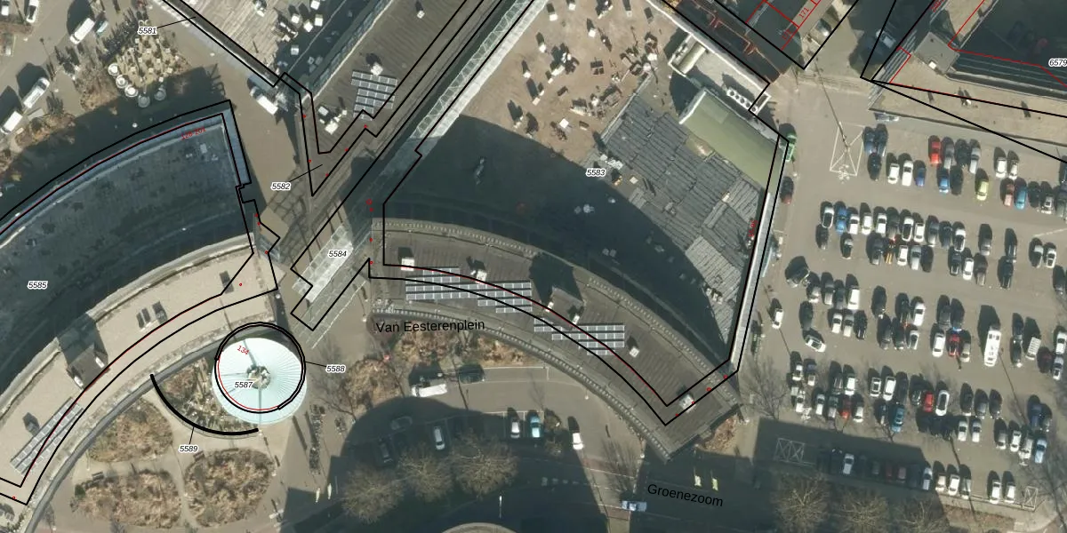 Het perceel waarop Van Eesterenplein 53 staat heeft een oppervlakte van 3740 m². Dit is een zeer groot perceel. De perceeloppervlakte wordt geregistreerd door het Kadaster. Gedetailleerde informatie over de maten van dit perceel kunt u vinden in het rapport Kadastrale kaart met maatvoering van Van Eesterenplein 53.