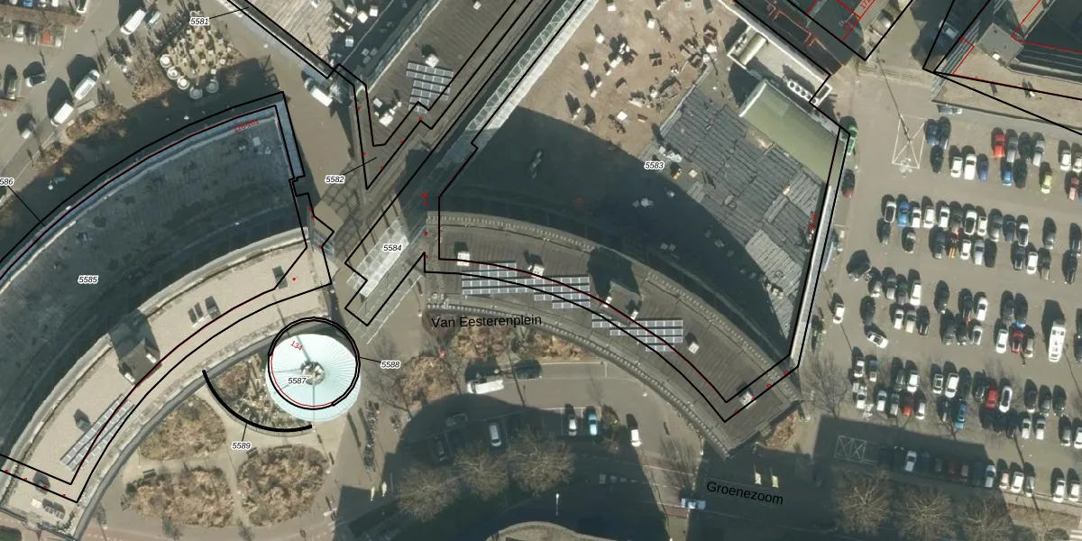 Het perceel waarop Van Eesterenplein 81 staat heeft een oppervlakte van 3740 m². Dit is een zeer groot perceel. De perceeloppervlakte wordt geregistreerd door het Kadaster. Gedetailleerde informatie over de maten van dit perceel kunt u vinden in het rapport Kadastrale kaart met maatvoering van Van Eesterenplein 81.
