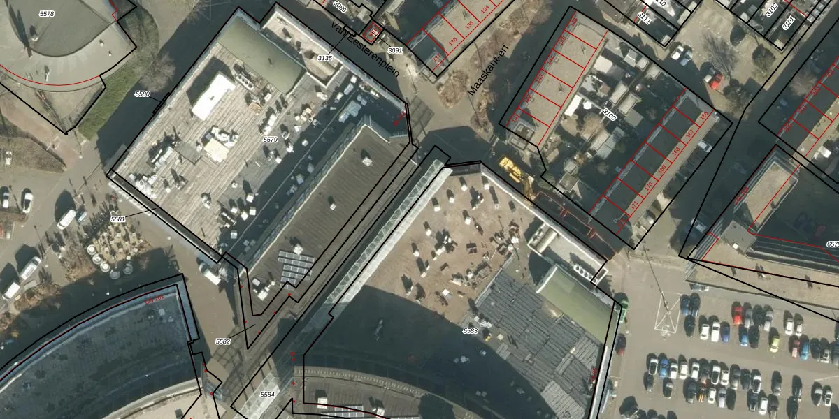 Het perceel waarop Van Eesterenplein 92 staat heeft een oppervlakte van 3740 m². Dit is een zeer groot perceel. De perceeloppervlakte wordt geregistreerd door het Kadaster. Gedetailleerde informatie over de maten van dit perceel kunt u vinden in het rapport Kadastrale kaart met maatvoering van Van Eesterenplein 92.