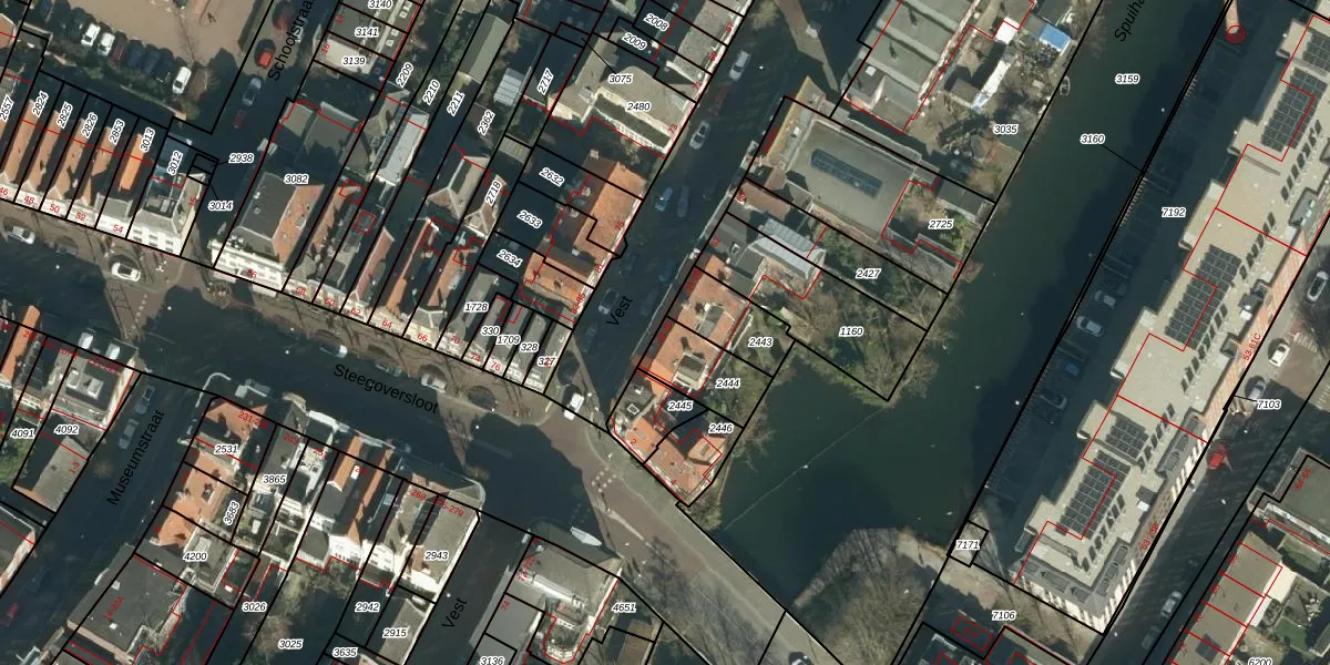 Het perceel waarop Vest 68 staat heeft een oppervlakte van 166 m². Dit is een middelgroot perceel. De perceeloppervlakte wordt geregistreerd door het Kadaster. Gedetailleerde informatie over de maten van dit perceel kunt u vinden in het rapport Kadastrale kaart met maatvoering van Vest 68.