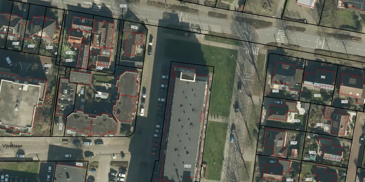 Vijverlaan 1321 is gelegen op kadastraal perceel DBD00A6264. Deze kadastrale aanduiding is uniek en wordt gebruikt door het Kadaster om eigendomsrechten en andere zakelijke rechten vast te leggen. Het perceel maakt onderdeel uit van de kadastrale gemeente Dubbeldam.