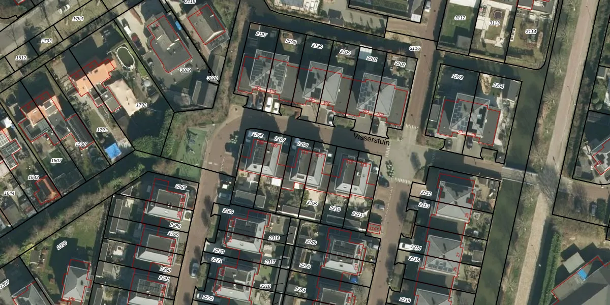 Het perceel waarop Visserstuin 110 staat heeft een oppervlakte van 196 m². Dit is een middelgroot perceel. De perceeloppervlakte wordt geregistreerd door het Kadaster. Gedetailleerde informatie over de maten van dit perceel kunt u vinden in het rapport Kadastrale kaart met maatvoering van Visserstuin 110.