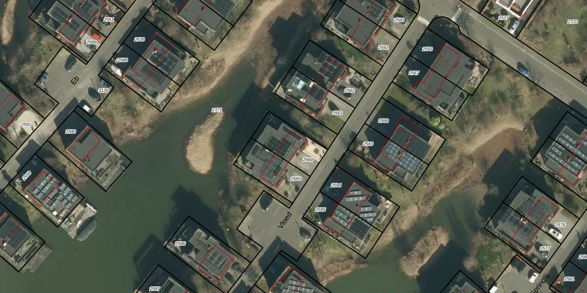 Vloed 9 is gelegen op kadastraal perceel DDT00I2564. Deze kadastrale aanduiding is uniek en wordt gebruikt door het Kadaster om eigendomsrechten en andere zakelijke rechten vast te leggen. Het perceel maakt onderdeel uit van de kadastrale gemeente Dordrecht.