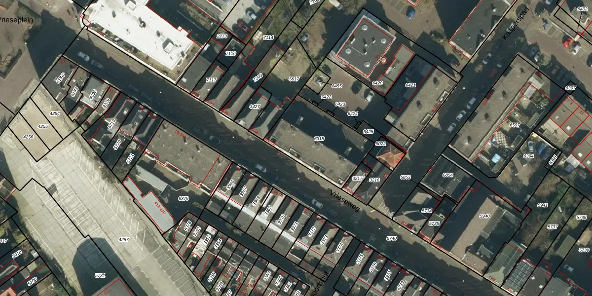 Het perceel waarop Vrieseweg 50 staat heeft een oppervlakte van 603 m². Dit is een groot perceel. De perceeloppervlakte wordt geregistreerd door het Kadaster. Gedetailleerde informatie over de maten van dit perceel kunt u vinden in het rapport Kadastrale kaart met maatvoering van Vrieseweg 50.