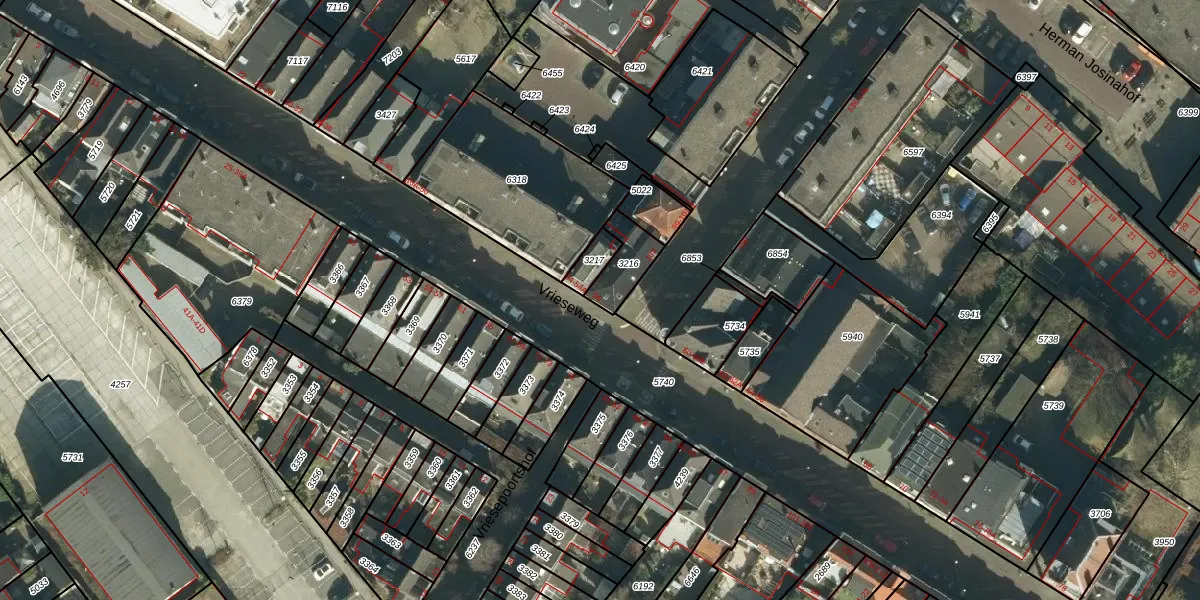 Vrieseweg 56 is gelegen op kadastraal perceel DDT00C3216. Deze kadastrale aanduiding is uniek en wordt gebruikt door het Kadaster om eigendomsrechten en andere zakelijke rechten vast te leggen. Het perceel maakt onderdeel uit van de kadastrale gemeente Dordrecht.