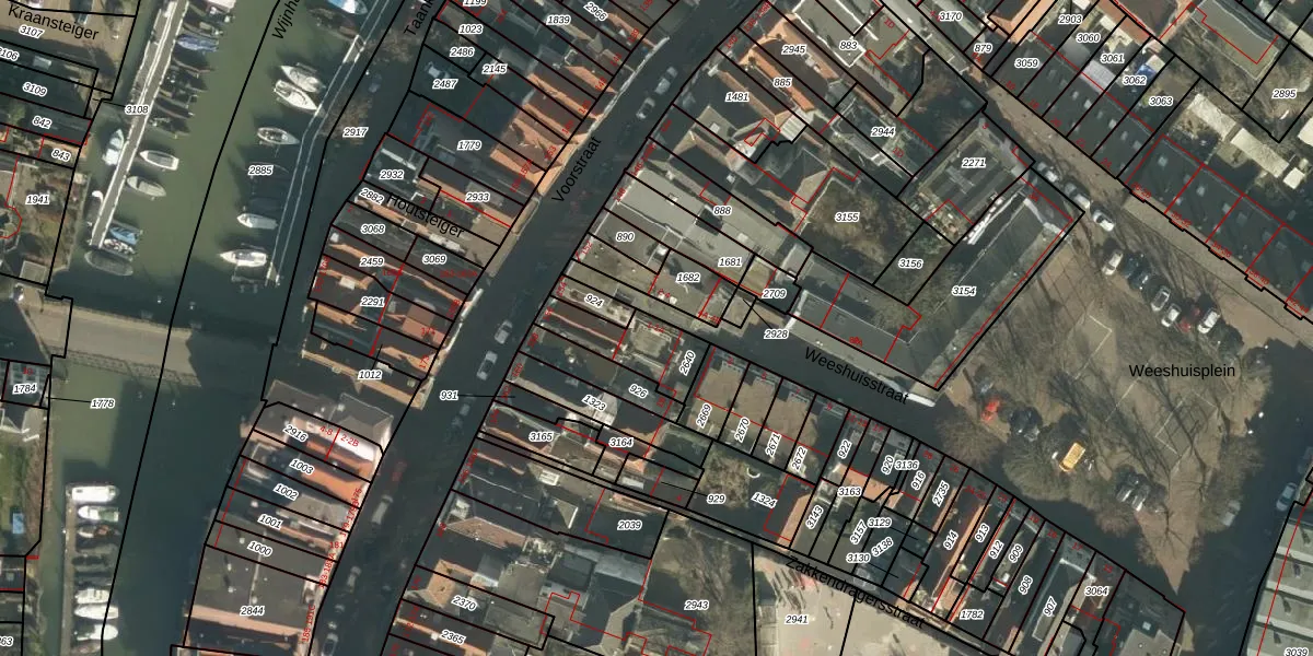 Het perceel waarop Weeshuisstraat 1 staat heeft een oppervlakte van 172 m². Dit is een middelgroot perceel. De perceeloppervlakte wordt geregistreerd door het Kadaster. Gedetailleerde informatie over de maten van dit perceel kunt u vinden in het rapport Kadastrale kaart met maatvoering van Weeshuisstraat 1.