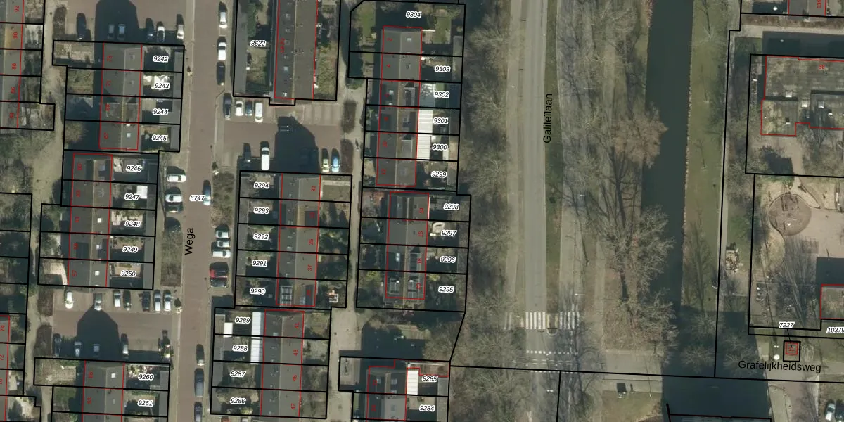 Het perceel waarop Wega 14 staat heeft een oppervlakte van 180 m². Dit is een middelgroot perceel. De perceeloppervlakte wordt geregistreerd door het Kadaster. Gedetailleerde informatie over de maten van dit perceel kunt u vinden in het rapport Kadastrale kaart met maatvoering van Wega 14.