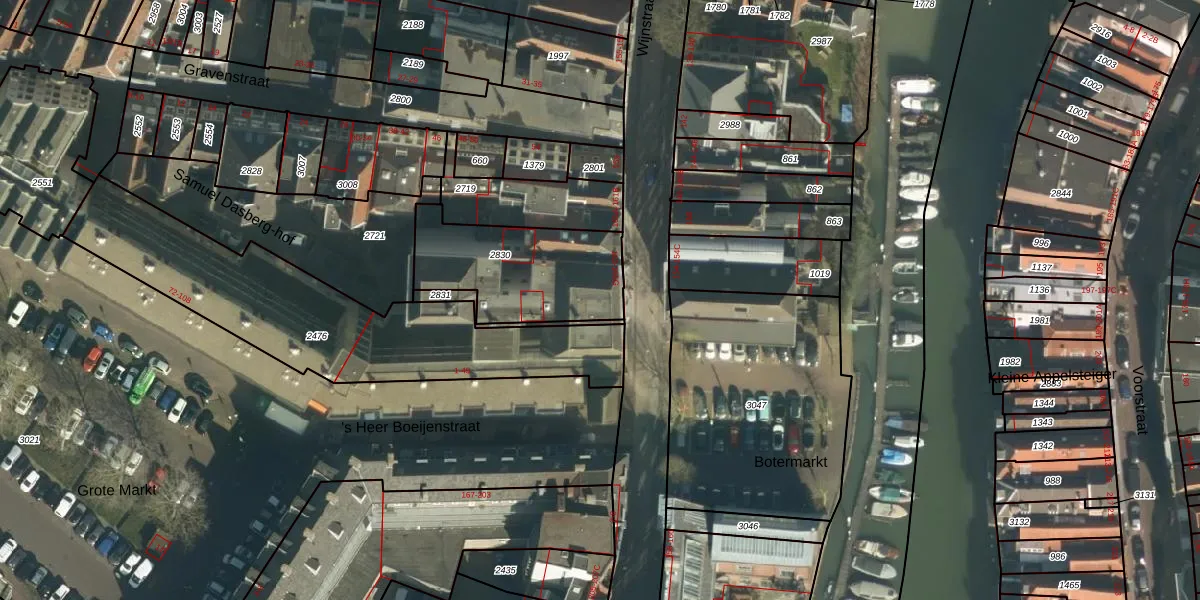 Wijnstraat 165-B is gelegen op kadastraal perceel DDT00F2830. Deze kadastrale aanduiding is uniek en wordt gebruikt door het Kadaster om eigendomsrechten en andere zakelijke rechten vast te leggen. Het perceel maakt onderdeel uit van de kadastrale gemeente Dordrecht.