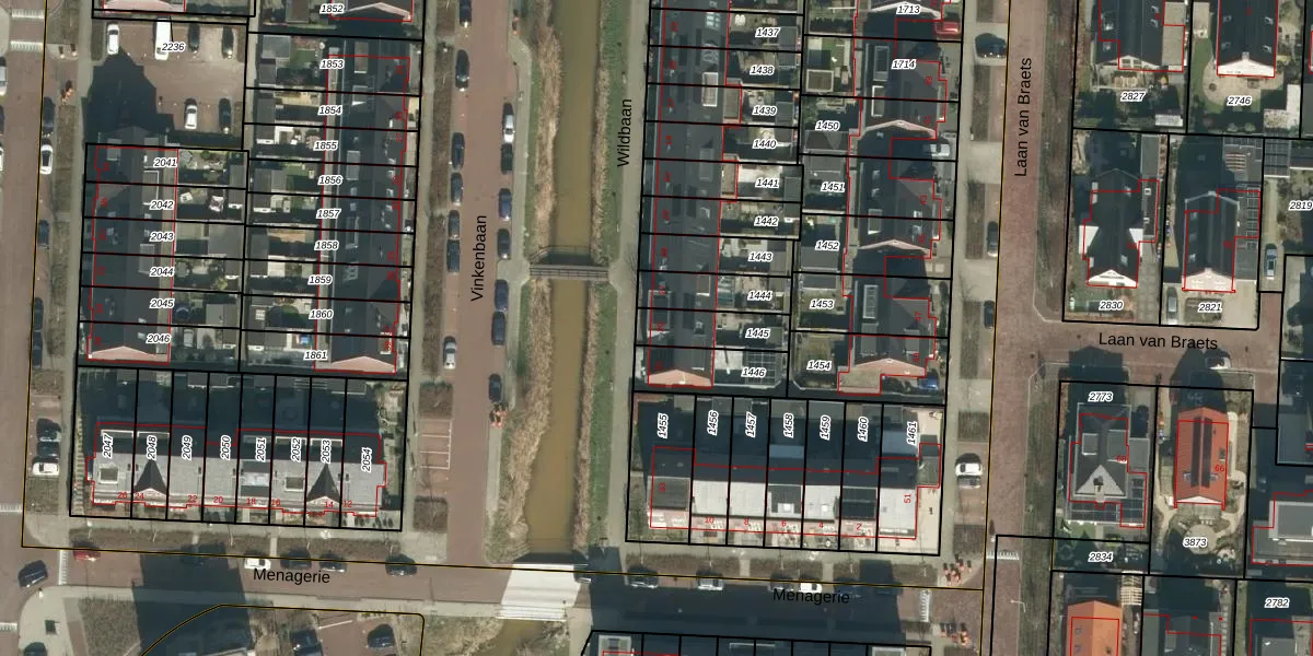 Het perceel waarop Wildbaan 29 staat heeft een oppervlakte van 134 m². Dit is een middelgroot perceel. De perceeloppervlakte wordt geregistreerd door het Kadaster. Gedetailleerde informatie over de maten van dit perceel kunt u vinden in het rapport Kadastrale kaart met maatvoering van Wildbaan 29.