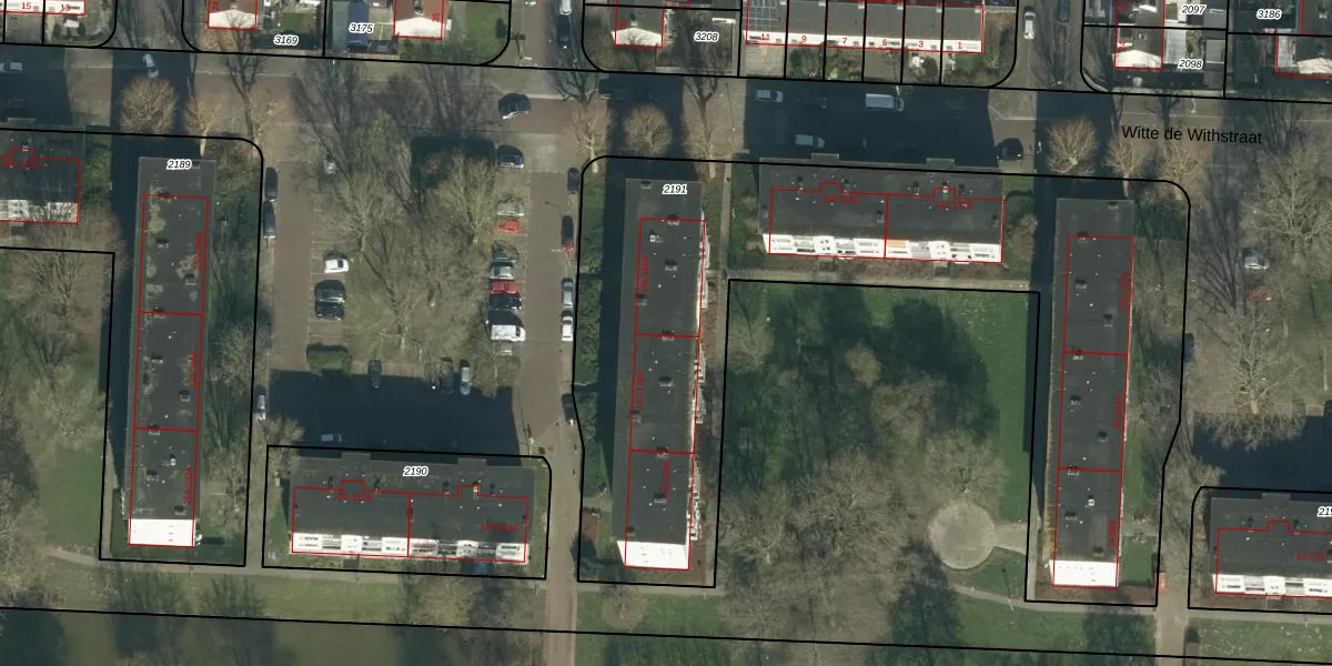 Het perceel waarop Witte de Withstraat 158 staat heeft een oppervlakte van 3565 m². Dit is een zeer groot perceel. De perceeloppervlakte wordt geregistreerd door het Kadaster. Gedetailleerde informatie over de maten van dit perceel kunt u vinden in het rapport Kadastrale kaart met maatvoering van Witte de Withstraat 158.