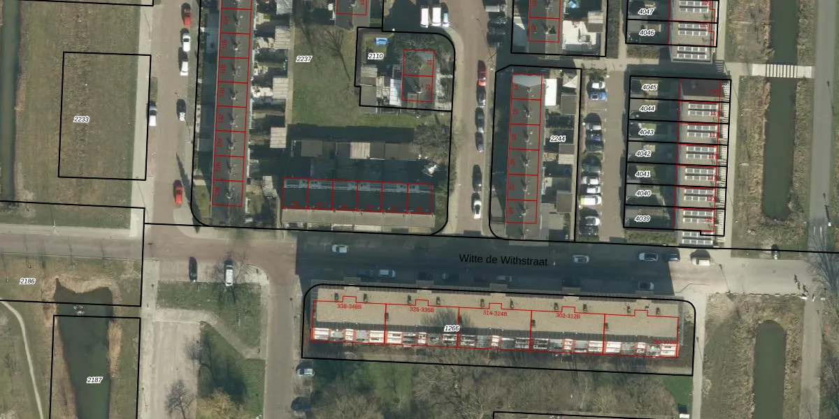 Het perceel waarop Witte de Withstraat 25 staat heeft een oppervlakte van 3785 m². Dit is een zeer groot perceel. De perceeloppervlakte wordt geregistreerd door het Kadaster. Gedetailleerde informatie over de maten van dit perceel kunt u vinden in het rapport Kadastrale kaart met maatvoering van Witte de Withstraat 25.