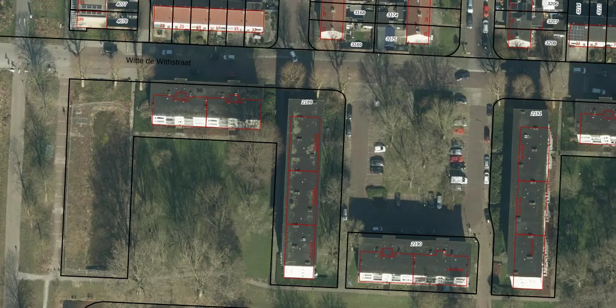 Het perceel waarop Witte de Withstraat 264 staat heeft een oppervlakte van 3590 m². Dit is een zeer groot perceel. De perceeloppervlakte wordt geregistreerd door het Kadaster. Gedetailleerde informatie over de maten van dit perceel kunt u vinden in het rapport Kadastrale kaart met maatvoering van Witte de Withstraat 264.