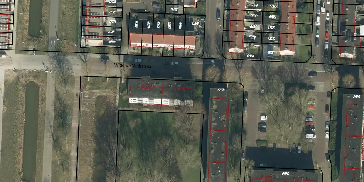 Het perceel waarop Witte de Withstraat 270 staat heeft een oppervlakte van 3590 m². Dit is een zeer groot perceel. De perceeloppervlakte wordt geregistreerd door het Kadaster. Gedetailleerde informatie over de maten van dit perceel kunt u vinden in het rapport Kadastrale kaart met maatvoering van Witte de Withstraat 270.