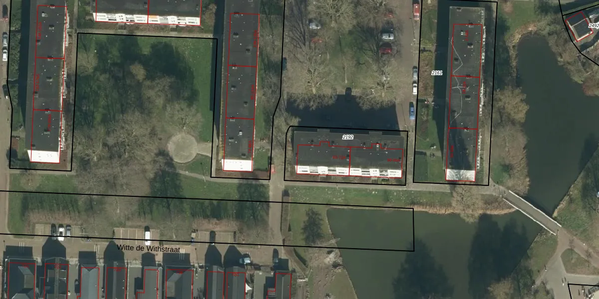Het perceel waarop Witte de Withstraat 62 staat heeft een oppervlakte van 735 m². Dit is een groot perceel. De perceeloppervlakte wordt geregistreerd door het Kadaster. Gedetailleerde informatie over de maten van dit perceel kunt u vinden in het rapport Kadastrale kaart met maatvoering van Witte de Withstraat 62.