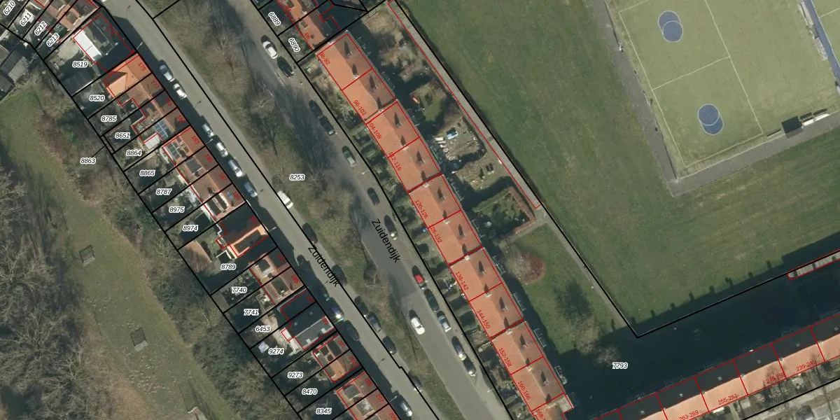 Het perceel waarop Zuidendijk 122 staat heeft een oppervlakte van 8580 m². Dit is een zeer groot perceel. De perceeloppervlakte wordt geregistreerd door het Kadaster. Gedetailleerde informatie over de maten van dit perceel kunt u vinden in het rapport Kadastrale kaart met maatvoering van Zuidendijk 122.