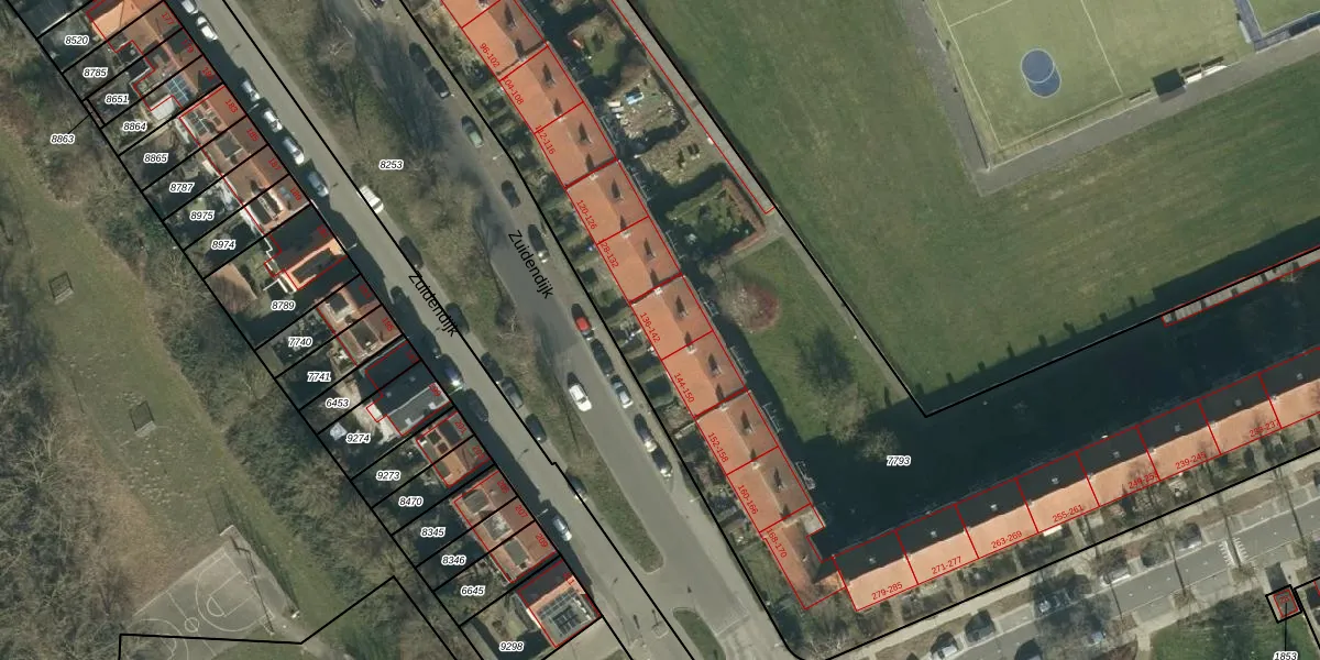 Het perceel waarop Zuidendijk 142 staat heeft een oppervlakte van 8580 m². Dit is een zeer groot perceel. De perceeloppervlakte wordt geregistreerd door het Kadaster. Gedetailleerde informatie over de maten van dit perceel kunt u vinden in het rapport Kadastrale kaart met maatvoering van Zuidendijk 142.
