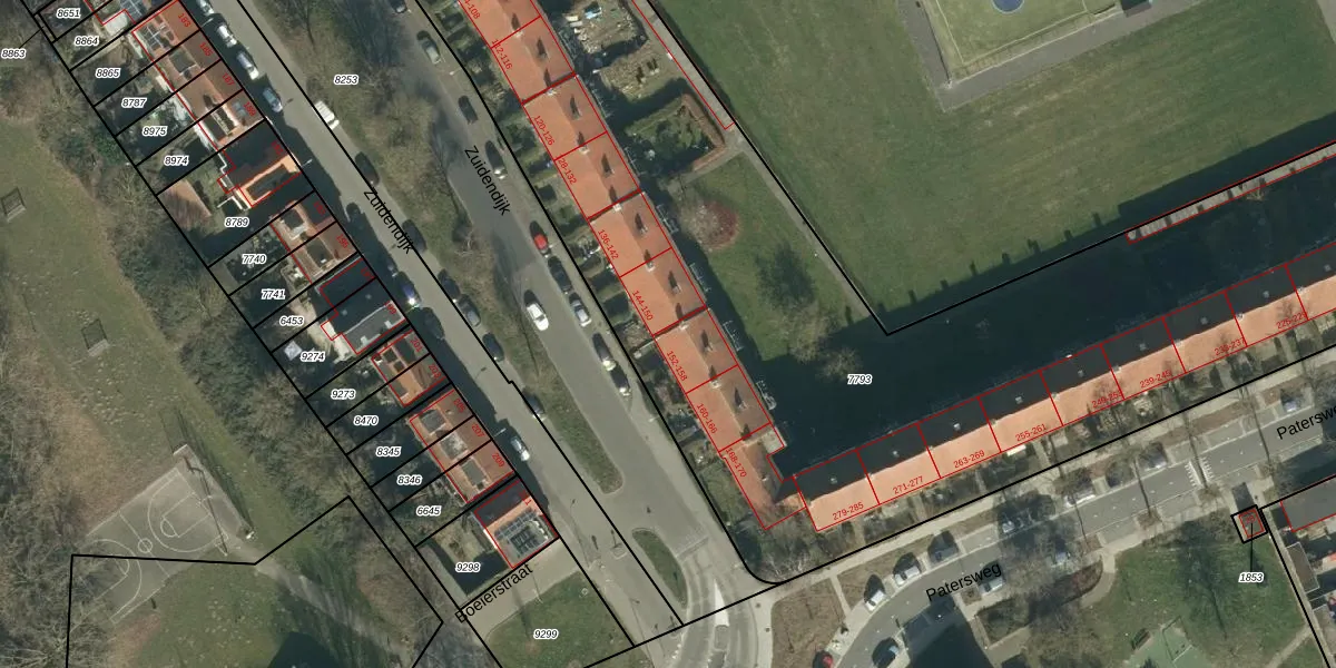 Het perceel waarop Zuidendijk 156 staat heeft een oppervlakte van 8580 m². Dit is een zeer groot perceel. De perceeloppervlakte wordt geregistreerd door het Kadaster. Gedetailleerde informatie over de maten van dit perceel kunt u vinden in het rapport Kadastrale kaart met maatvoering van Zuidendijk 156.