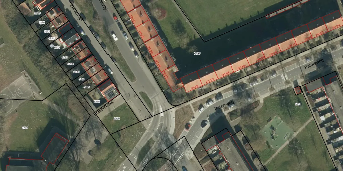 Het perceel waarop Zuidendijk 170 staat heeft een oppervlakte van 8580 m². Dit is een zeer groot perceel. De perceeloppervlakte wordt geregistreerd door het Kadaster. Gedetailleerde informatie over de maten van dit perceel kunt u vinden in het rapport Kadastrale kaart met maatvoering van Zuidendijk 170.