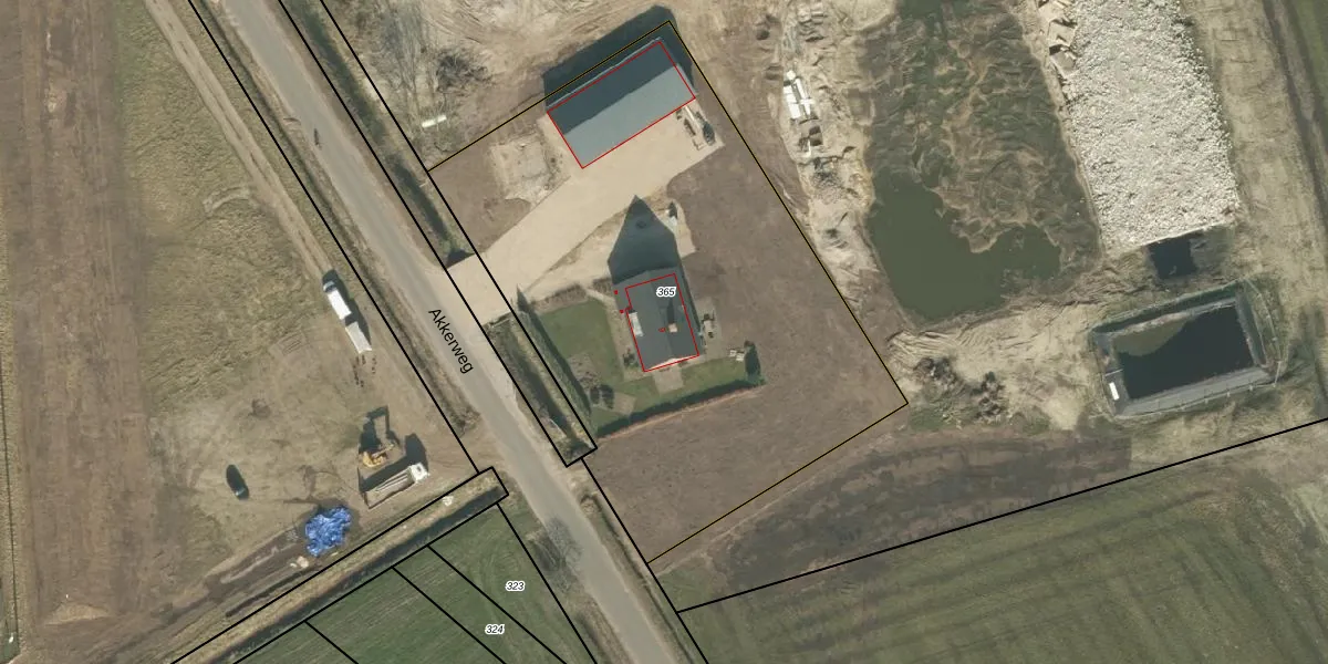 Het perceel waarop Akkerweg 9 staat heeft een oppervlakte van 2988 m². Dit is een zeer groot perceel. De perceeloppervlakte wordt geregistreerd door het Kadaster. Gedetailleerde informatie over de maten van dit perceel kunt u vinden in het rapport Kadastrale kaart met maatvoering van Akkerweg 9.