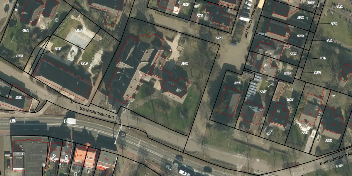 Het perceel waarop Baarschotsestraat 87 staat heeft een oppervlakte van 2930 m². Dit is een zeer groot perceel. De perceeloppervlakte wordt geregistreerd door het Kadaster. Gedetailleerde informatie over de maten van dit perceel kunt u vinden in het rapport Kadastrale kaart met maatvoering van Baarschotsestraat 87.