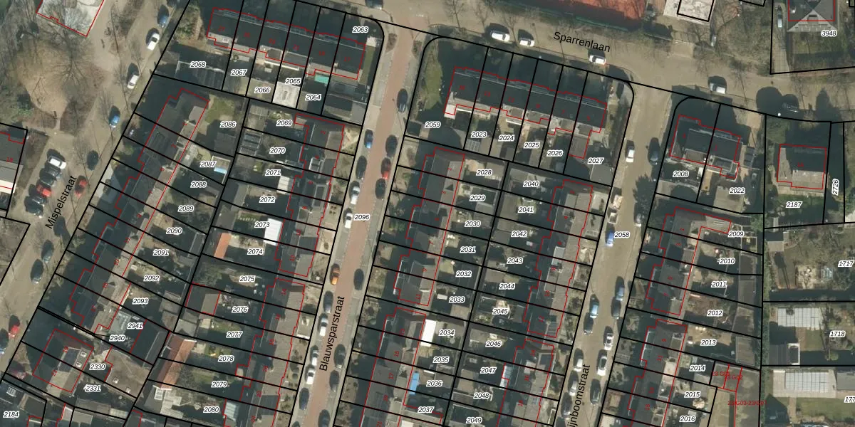 Blauwsparstraat 5 is gelegen op kadastraal perceel OTH01K2030. Deze kadastrale aanduiding is uniek en wordt gebruikt door het Kadaster om eigendomsrechten en andere zakelijke rechten vast te leggen. Het perceel maakt onderdeel uit van de kadastrale gemeente Oosterhout.