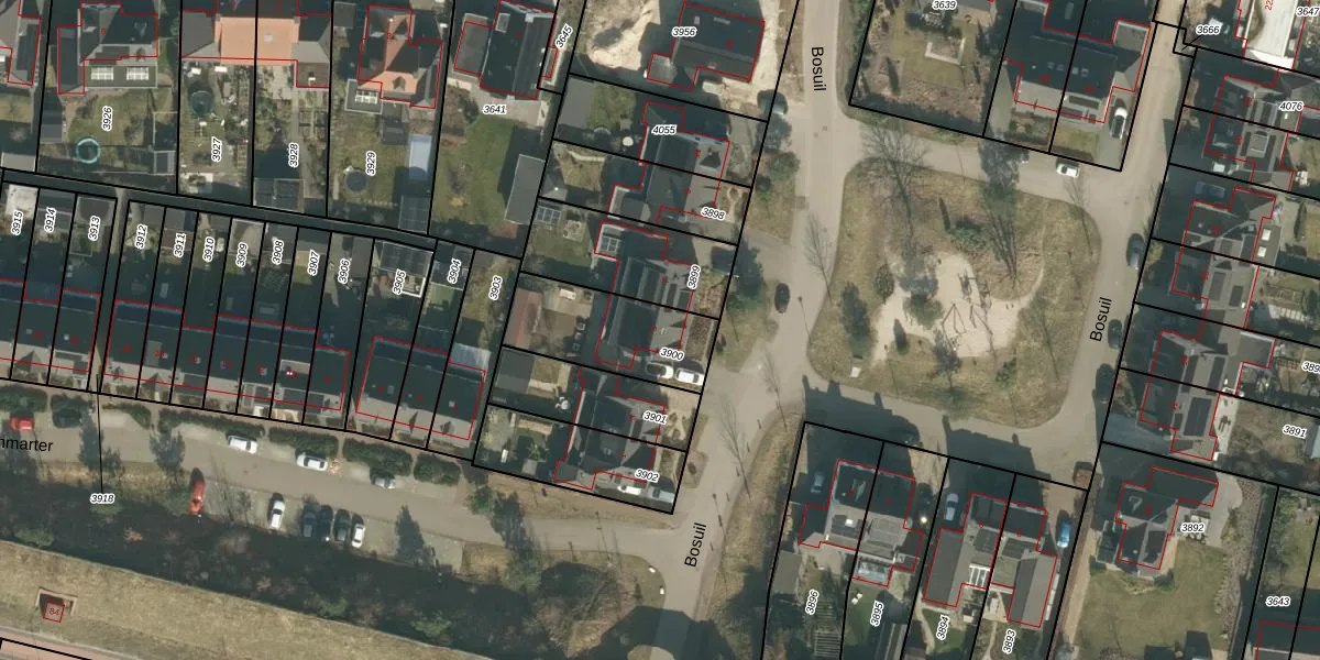Het perceel waarop Bosuil 5 staat heeft een oppervlakte van 363 m². Dit is een groot perceel. De perceeloppervlakte wordt geregistreerd door het Kadaster. Gedetailleerde informatie over de maten van dit perceel kunt u vinden in het rapport Kadastrale kaart met maatvoering van Bosuil 5.