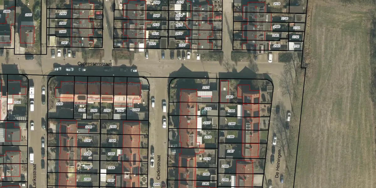 Het perceel waarop Cederstraat 1 staat heeft een oppervlakte van 345 m². Dit is een groot perceel. De perceeloppervlakte wordt geregistreerd door het Kadaster. Gedetailleerde informatie over de maten van dit perceel kunt u vinden in het rapport Kadastrale kaart met maatvoering van Cederstraat 1.
