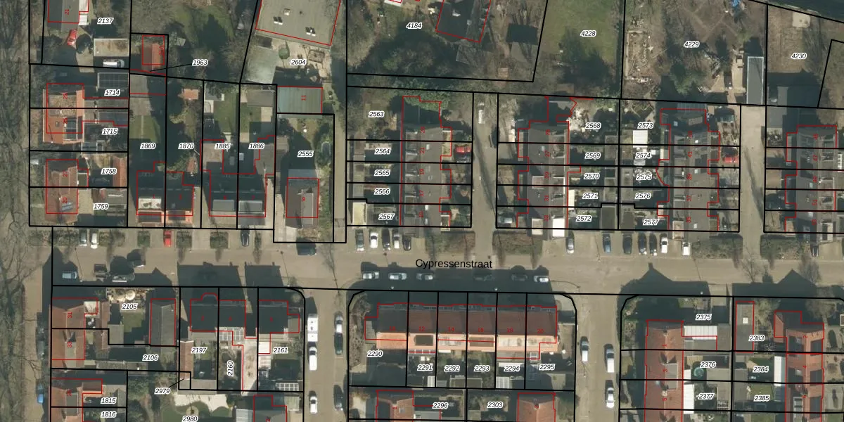 Het perceel waarop Cypressenstraat 15 staat heeft een oppervlakte van 159 m². Dit is een middelgroot perceel. De perceeloppervlakte wordt geregistreerd door het Kadaster. Gedetailleerde informatie over de maten van dit perceel kunt u vinden in het rapport Kadastrale kaart met maatvoering van Cypressenstraat 15.