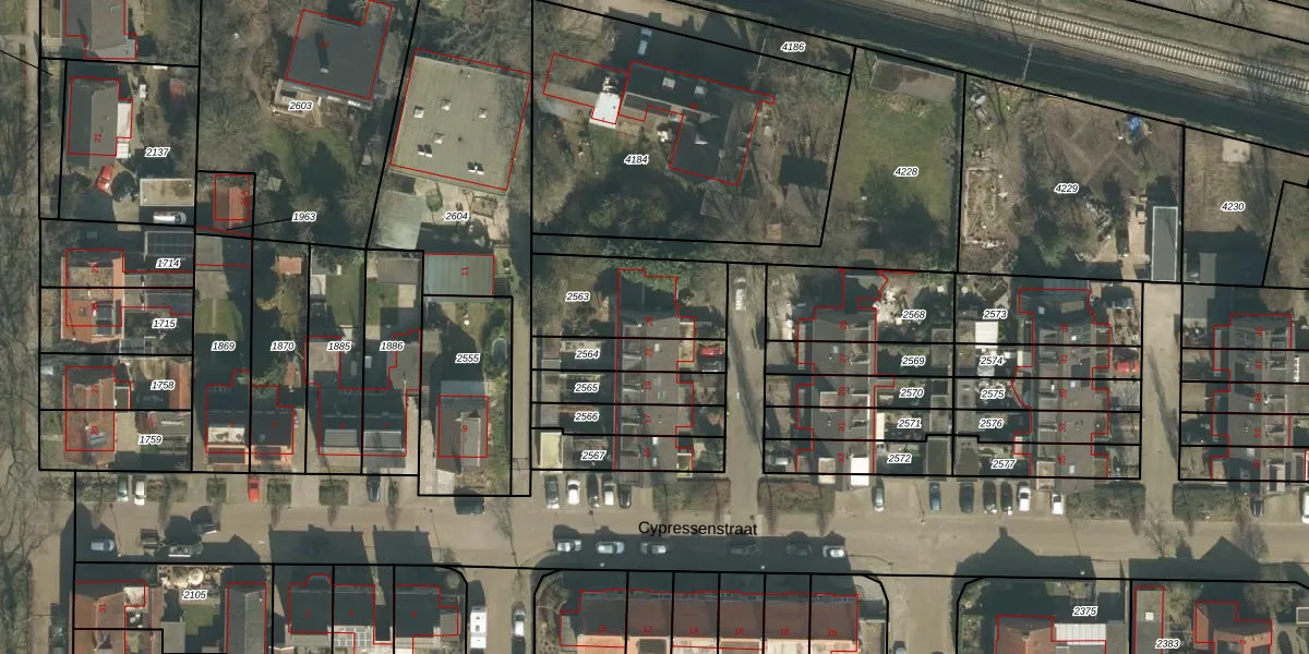 Het perceel waarop Cypressenstraat 23 staat heeft een oppervlakte van 361 m². Dit is een groot perceel. De perceeloppervlakte wordt geregistreerd door het Kadaster. Gedetailleerde informatie over de maten van dit perceel kunt u vinden in het rapport Kadastrale kaart met maatvoering van Cypressenstraat 23.