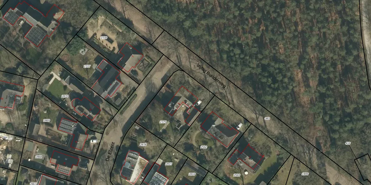 Het perceel waarop De Elzent 1 staat heeft een oppervlakte van 918 m². Dit is een groot perceel. De perceeloppervlakte wordt geregistreerd door het Kadaster. Gedetailleerde informatie over de maten van dit perceel kunt u vinden in het rapport Kadastrale kaart met maatvoering van De Elzent 1.