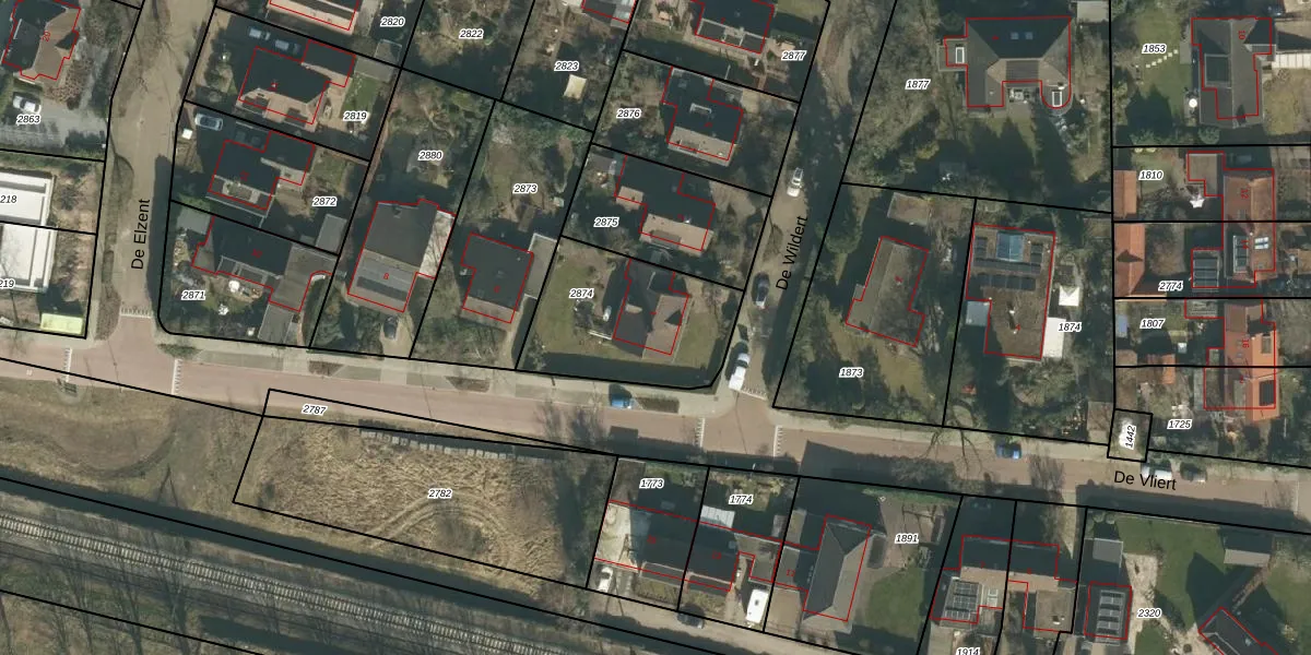 Het perceel waarop De Wildert 1 staat heeft een oppervlakte van 549 m². Dit is een groot perceel. De perceeloppervlakte wordt geregistreerd door het Kadaster. Gedetailleerde informatie over de maten van dit perceel kunt u vinden in het rapport Kadastrale kaart met maatvoering van De Wildert 1.
