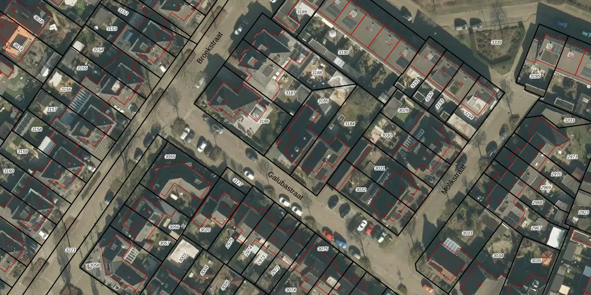 Gebruik de zoekbalk of klik op een perceel voor informatie over de adressen binnen dit perceel.