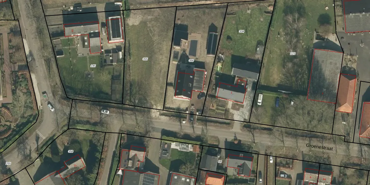 Het perceel waarop Groenestraat 1-A staat heeft een oppervlakte van 1425 m². Dit is een zeer groot perceel. De perceeloppervlakte wordt geregistreerd door het Kadaster. Gedetailleerde informatie over de maten van dit perceel kunt u vinden in het rapport Kadastrale kaart met maatvoering van Groenestraat 1-A.