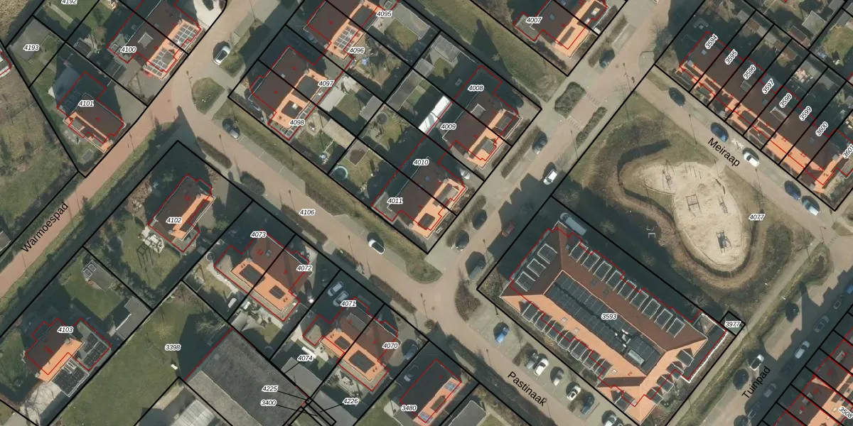 Het perceel waarop Kardoenpad 1 staat heeft een oppervlakte van 338 m². Dit is een groot perceel. De perceeloppervlakte wordt geregistreerd door het Kadaster. Gedetailleerde informatie over de maten van dit perceel kunt u vinden in het rapport Kadastrale kaart met maatvoering van Kardoenpad 1.